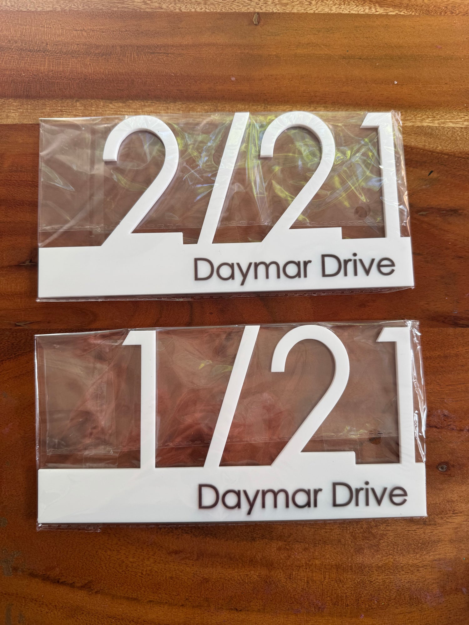 We use high quality acrylic to ensure your sign lasts in the weather.  Text is printed with a high-defintion UV printer.  100% waterproof, modern and designed to improve your street appeal.
