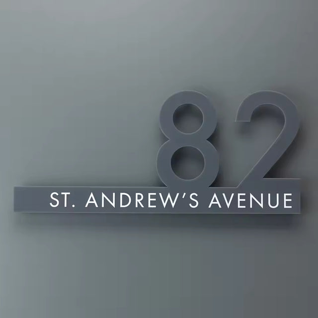 CUSTOM HOUSE OUTSIDE SIGN NUMBER STREET HOUSE ADDRESS GRAY GREY ACRYLIC WHITE TEXT CUT WALL SIGN - 20cm is backordered and will ship as soon as it is back in stock.