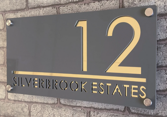 CUSTOM HOUSE SIGN NUMBER STREET SIGN GREY GOLD ACRYLIC ADDRESS DOOR WALL PLAQUE