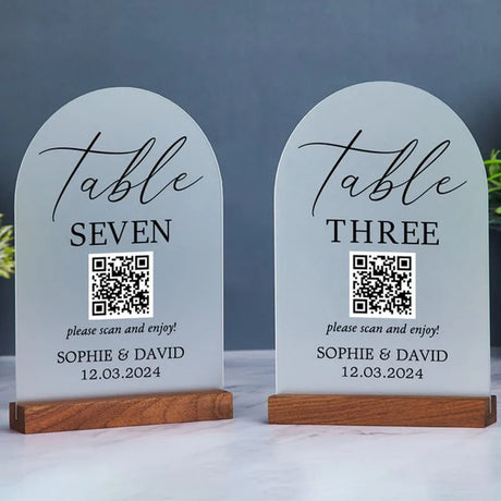CUSTOM ACRYLIC TABLE NUMBER SIGN WITH QR CODE WEDDING RESTAURANT MENU