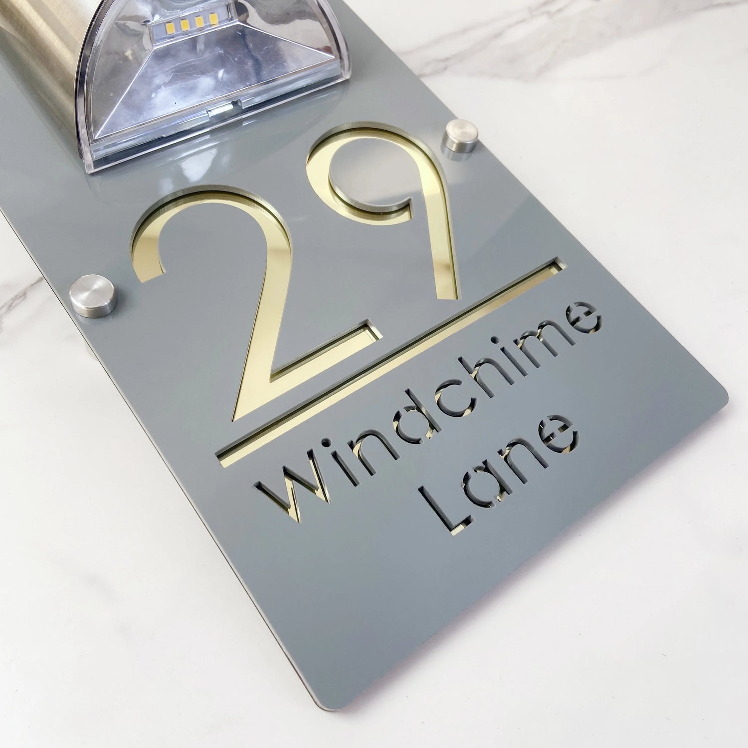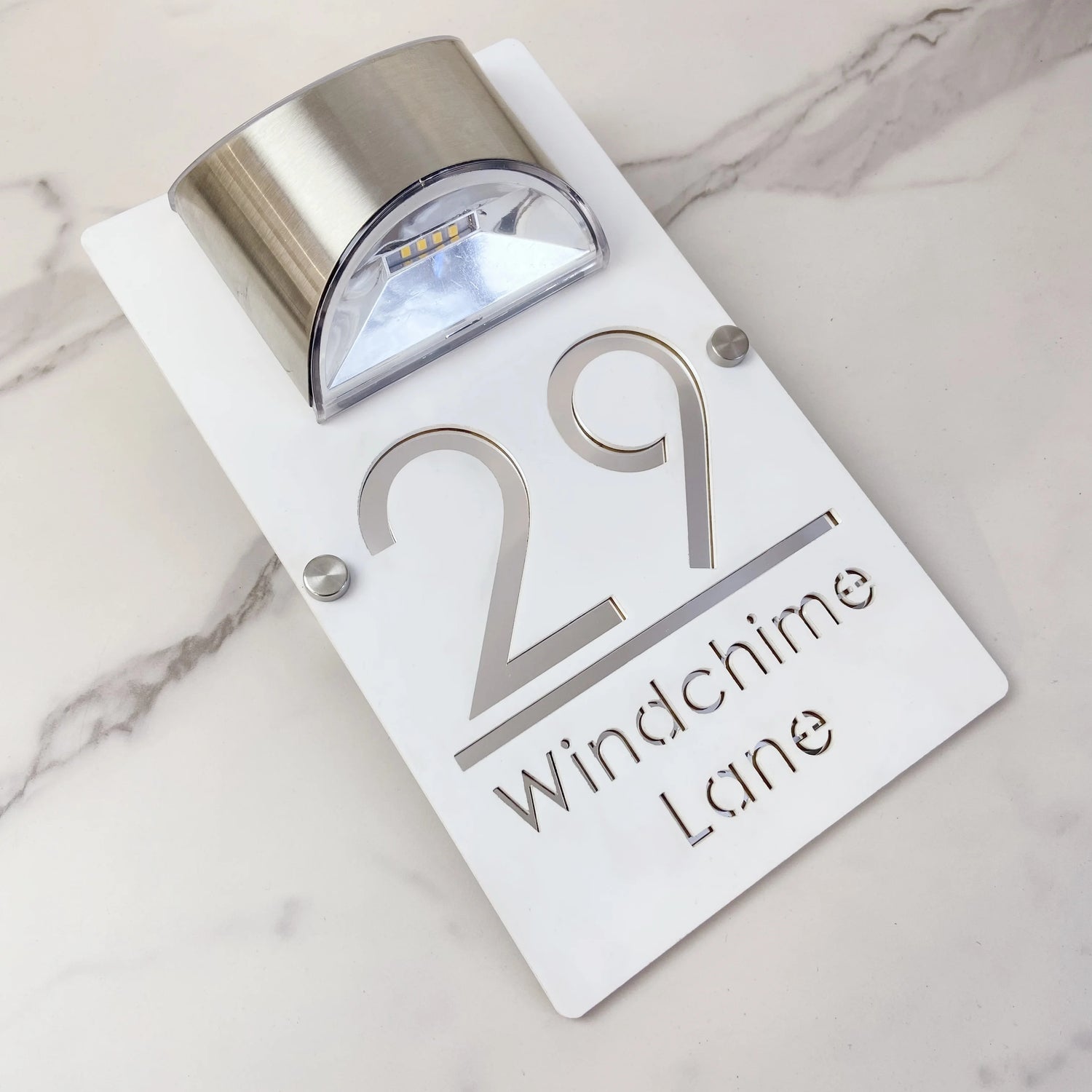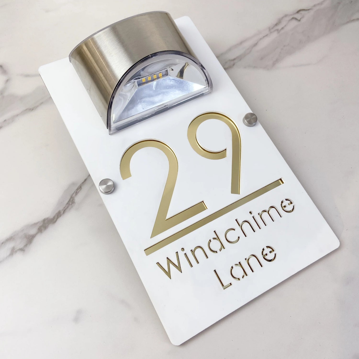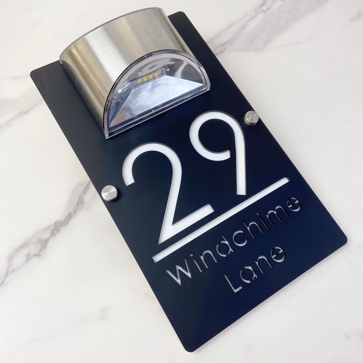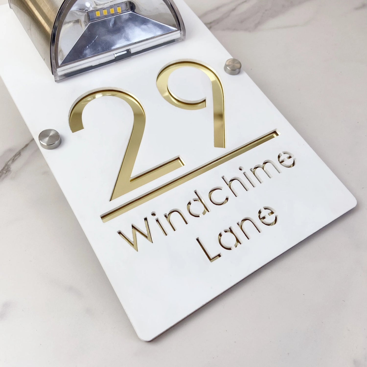 LED SOLAR POWERED OUTSIDE CUSTOM HOUSE SIGN LASER CUT NUMBER STREET HOUSE ADDRESS WALL SIGN