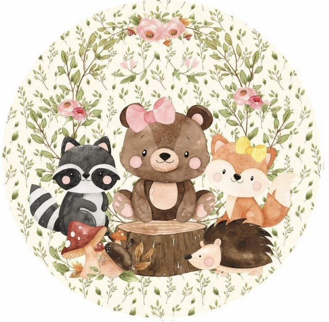 ANIMALS WOODLAND GATHERING FOX RACOON BEAR BOWS PARTY ROUND BIRTHDAY BANNER