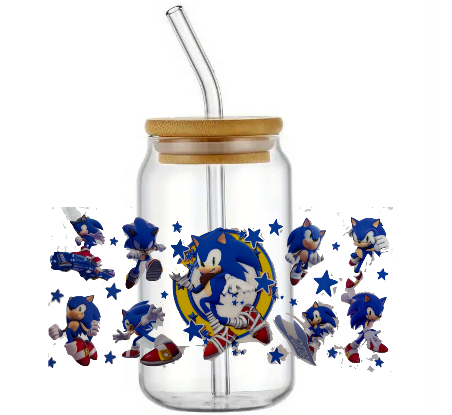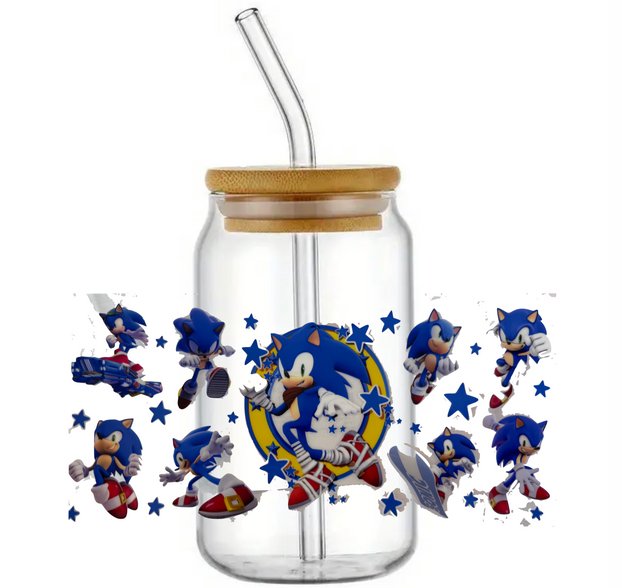 SONIC THE HEDGEHOG GLASS JAR TUMBLER CUP WITH LID, STRAW AND BRUSH
